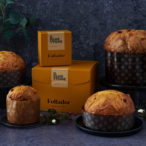 Le nuove proposte includono i Folladorini da 200 g (Panettoncino e Pandorato), perfetti come piccolo dono o assaggio personale; il formato da 500 g, ideale da gustare in famiglia o tra amici; i panettoni da 800 g, pensati per la convivialità delle feste; e il Panettone da Tradizione da 1,5 kg, protagonista della tavola natalizia.