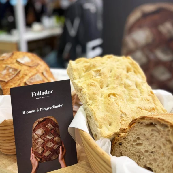 Forno Follador ha portato in fiera una selezione di prodotti rappresentativi, dai grandi lievitati – la Venexiana all’albicocca e la Colomba da Tradizione – ai pani di grande formato: la Sincera, prodotta con farine di farro e di tipo 1, malto d’orzo tostato e impreziosita da semi misti; la Nobile, realizzata con farina di grano duro integrale; e la Gentile, la nuova pagnotta al farro, delicata e digeribile, presentata in anteprima a Taste.