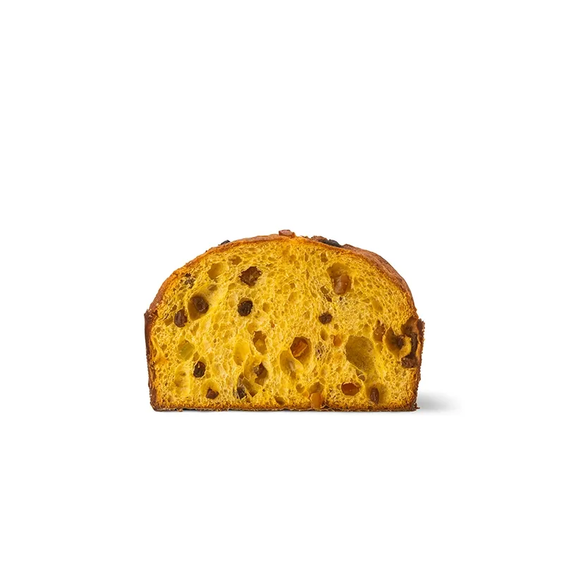 Un classico della tradizione milanese, soffice, profumato di cedro, arance e pregiata vaniglia Bourbon del Madagascar. Al suo interno custodisce uvetta sultanina di colore ambrato e canditi di alta qualità. Lavorato con burro ottenuto da crema di latte e con lievito madre da rinfresco che esalta il gusto naturale del lievitato e offre fragranza.